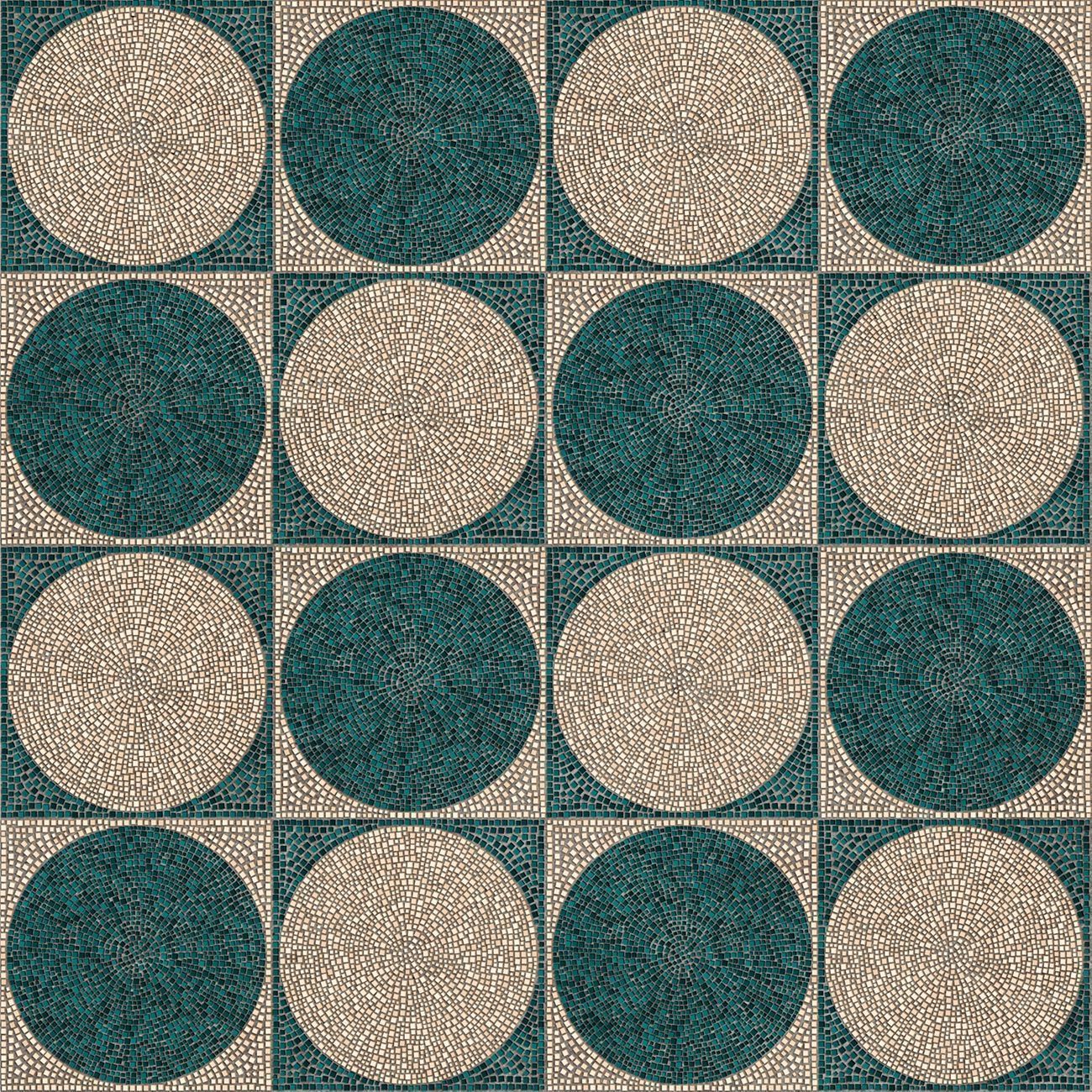 Образцы коллекции характеризуются современными и изысканными мотивами полихромии, вдохновлены геометрическими узорами мозаичных работ, украшающих полы Ванн Каракаллы в Риме.