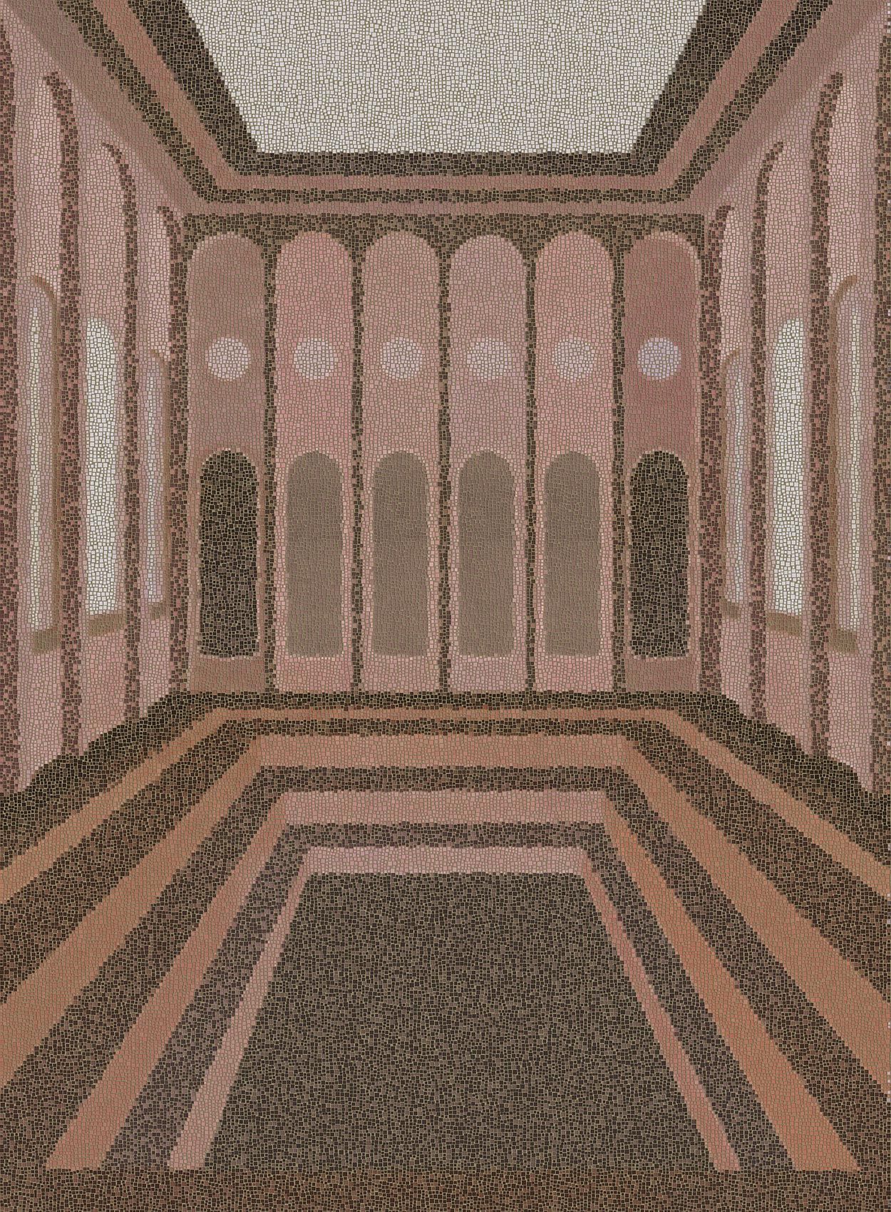 Конструкция из сверхпрозрачного стекла прямоугольной формы со стороной от 3,5 до 7 мм, украшенная цветными и металлическими нанослоями и нанесенная на полимерные, блокирующие гибкие опоры основания.